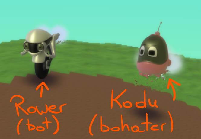 Świat gry to tor. Posiada 3 rodzaje nawierzchni. Na jednych Kodu będzie poruszał się szybciej, na innych wolniej.