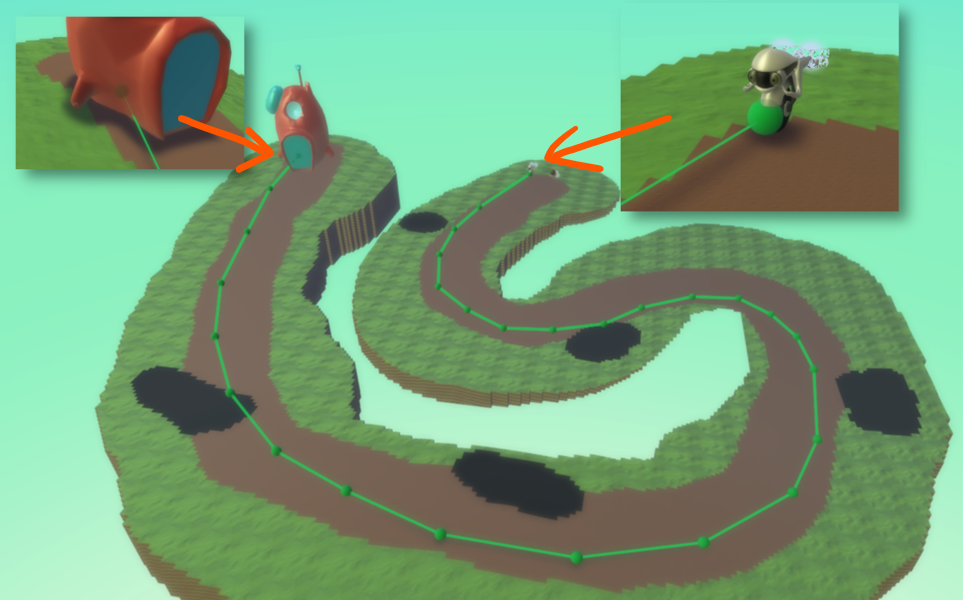 Użyj narzędzia „ścieżka”, aby wyznaczyć botowi drogę, którą ma jechać do mety. Zacznij na starcie, skończ na mecie.