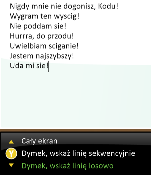 Dobrym pomysłem będzie wpisanie kilka tekstów w kolejnych liniach. Jeśli każemy im pokazywać się losowo, urozmaici to grę.