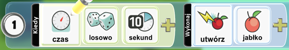 - 2 linijka uczy go, że potrafi podnosić jabłka, gdy ich dotknie.